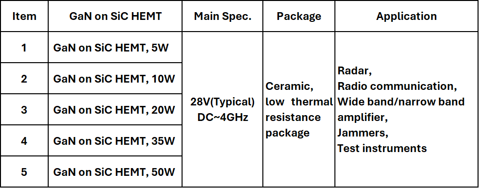 GaN on SiC PA Transistor 28V, DC~4GHz